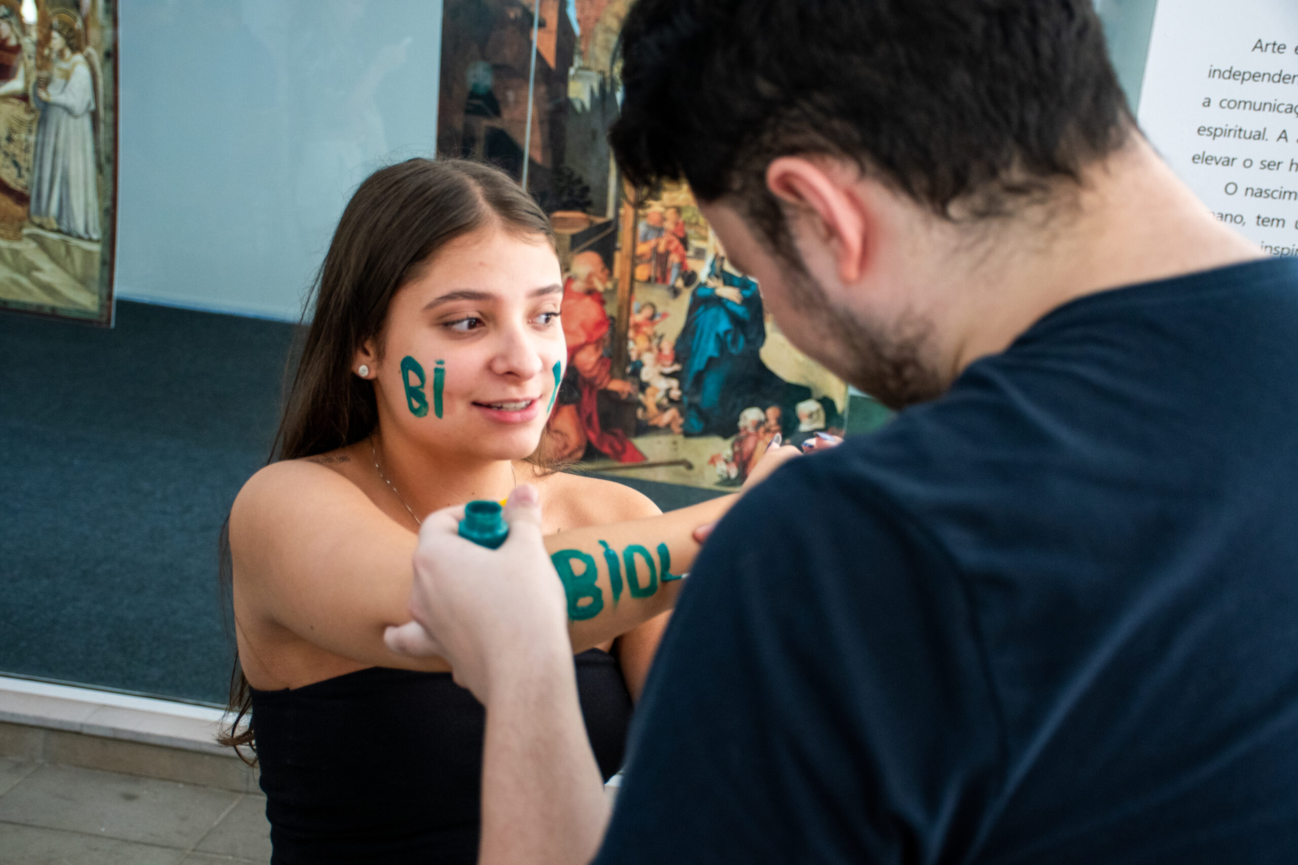 Além disso, os acadêmicos veteranos aproveitaram a ocasião para comemorar a chegada de seus “bixos” e realizar a tradicional brincadeira de pintar os novatos com tinta. Os acadêmicos de Medicina estavam aguardando a divulgação dos nomes com um pequeno pitbull, que se tornou uma das atrações do momento.
